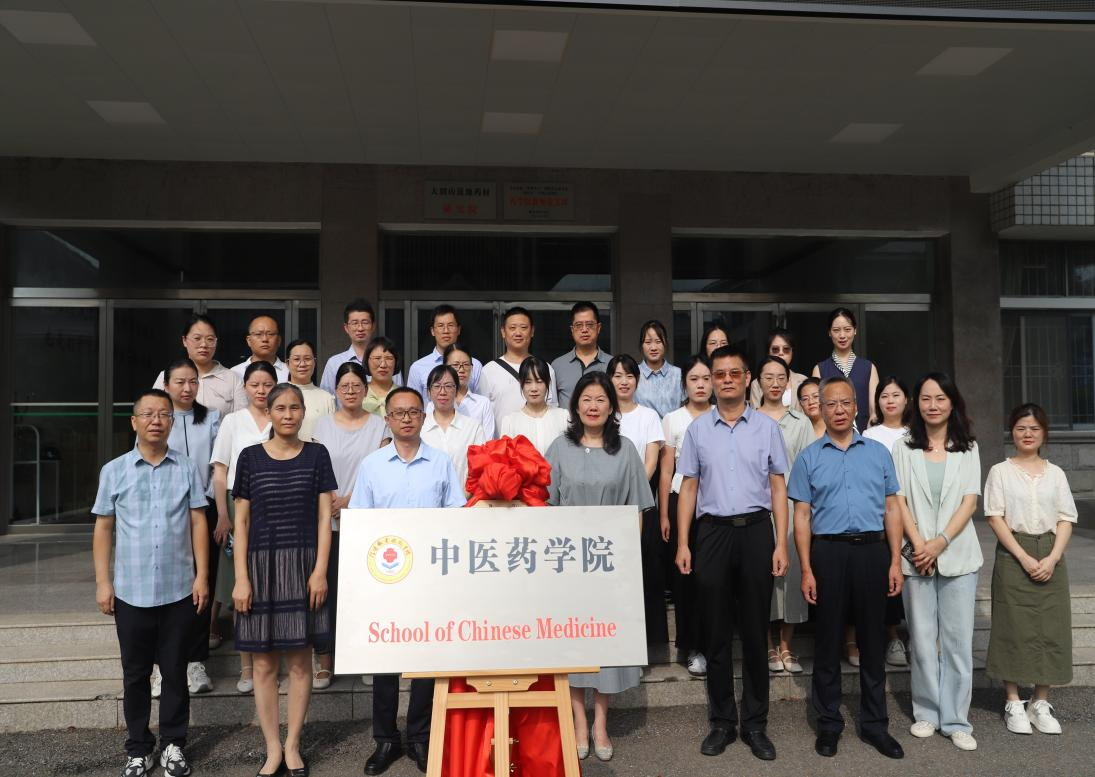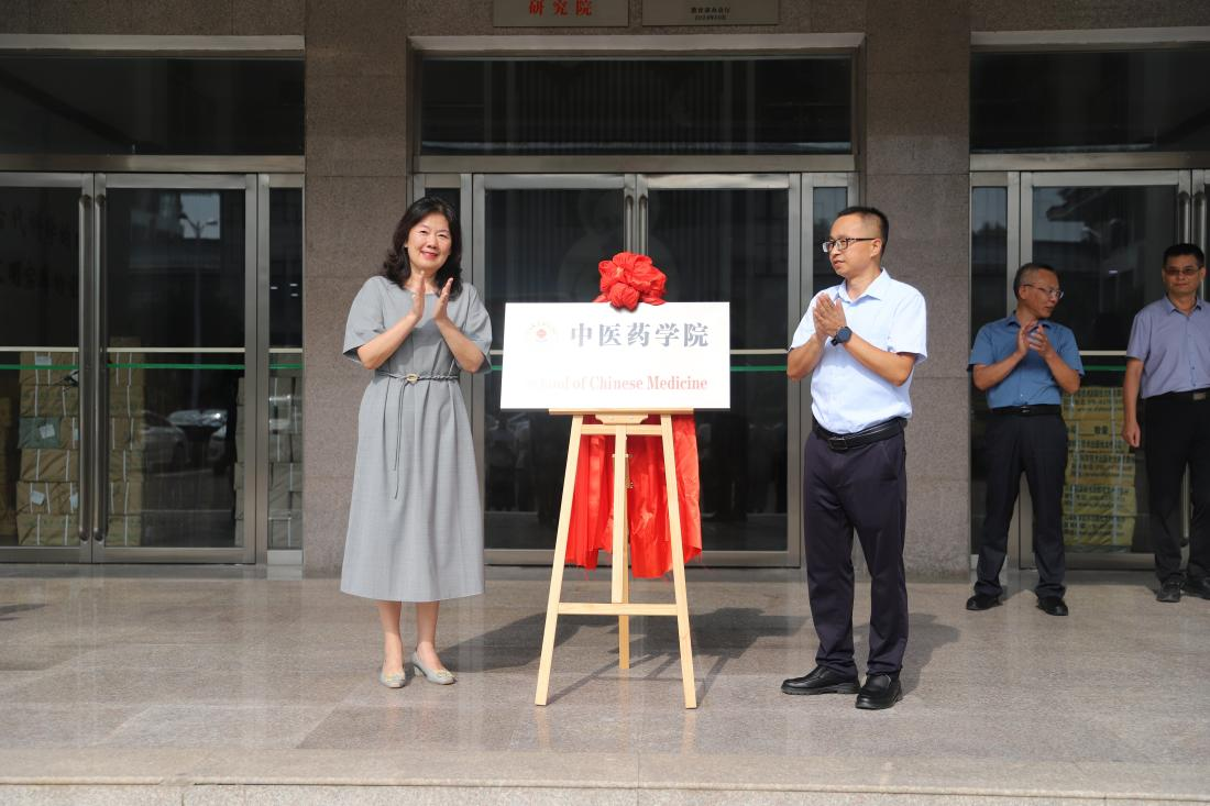 首先,任传忠宣读了校党委《关于“药学院”更名“中医药学院”的通知》的文件。随后,蒋有红和陈才共同为“中医药学院”揭牌。