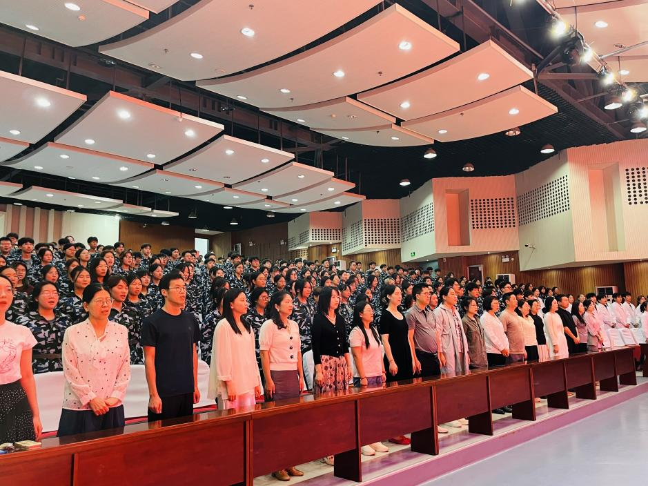 典礼在庄严的国歌声中正式拉开帷幕,全体师生肃立齐唱,展现了昂扬向上的精神风貌。