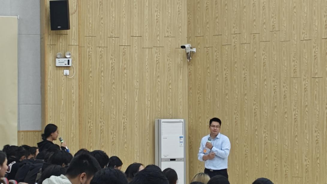 陈少君校友深情回顾了在母校求学期间的点点滴滴,分享了如何从懵懂新生成长为一名合格药学人的心路历程。结合自身在市场监管部门的工作实践,他详细阐述了药学专业在保障公众用药安全、服务基层医疗卫生事业中的重要作用与广阔前景。围绕“职业规划”这一核心,他从目标设定、能力储备、心态调整等方面给出了中肯建议,并鼓励学弟学妹们要“立鸿鹄志,做奋斗者”,珍惜在校时光,夯实专业基础,锤炼综合素养,勇敢地将个人理想融入国家与社会发展的需要之中。